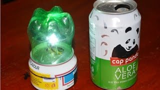 apa saja bahan dan alat untuk membuat lampu tidur ini,? bahan dan alatnya adalah botol plastik, kaleng minuman, lampu led pada korek api, kabel, stop kontak ...