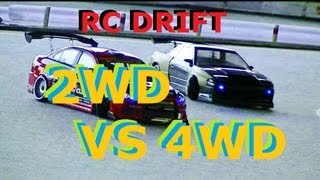 2WD and 4WD RC car running together. Red car Lancer Evolution is a 4wd Yokomo DRB and black car is a EAGLE conversion kit for R31 chassis to front motor, converted to RWD. DRB 4wd driver: Sato...